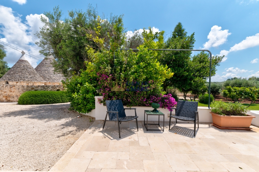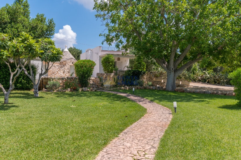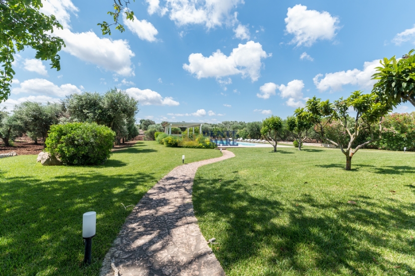 Affascinanti vialetti di pietre immersi nel curatissimo prato inglese conducono direttamente alle cinque unità di Borgo La Mia Puglia.