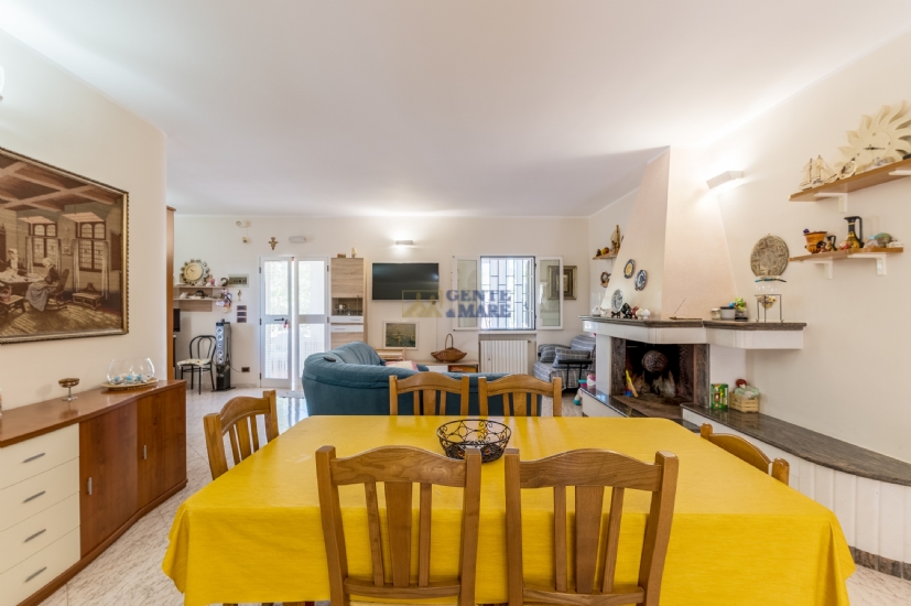 All’interno la villa si compone di un ampio ingresso con veranda ideale per pranzare o cenare all’aperto, una spaziosa sala con camino, un cucinino perfettamente funzionale, tre camere da letto di cui una con bagno en suite e un secondo bagno.