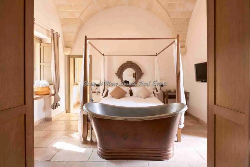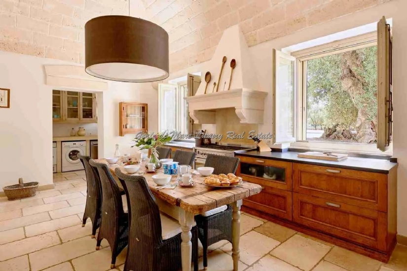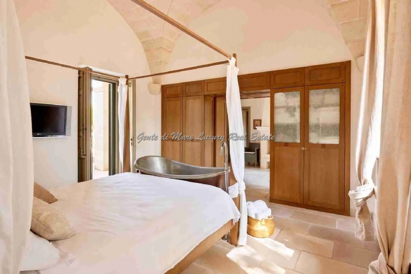 Quest’imponente masseria è circondata da due ettari di terra rossa e ulivi, attraversando un antico e silenzioso tratturo raggiungerai il corpo centrale. Esternamente si erge splendida nella sua cornice naturale circondata dalla natura una bellissima piscina.