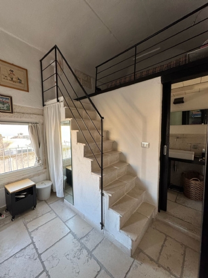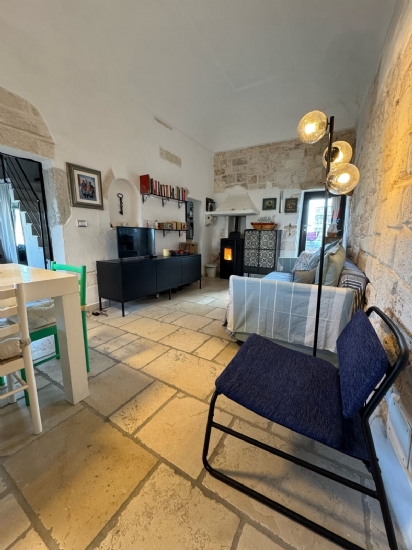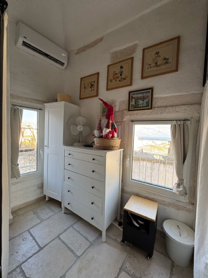 Questa affascinante abitazione si trova al primo piano e si sviluppa su una superficie commerciale di 100 mq (50 mq calpestabili). Gli interni accoglienti e curati offrono una sala da pranzo luminosa e accogliente, completa di divano e una stufa a pellet, ideale per creare un’atmosfera intima e calda durante le serate invernali, un cucinino funzionale, perfetto per preparare piatti ispirati alla cucina pugliese, una camera da letto con soppalco, che aggiunge un tocco di originalità e sfrutta al meglio gli spazi verticali ed un bagno luminoso con finestra, che garantisce comfort e praticità.