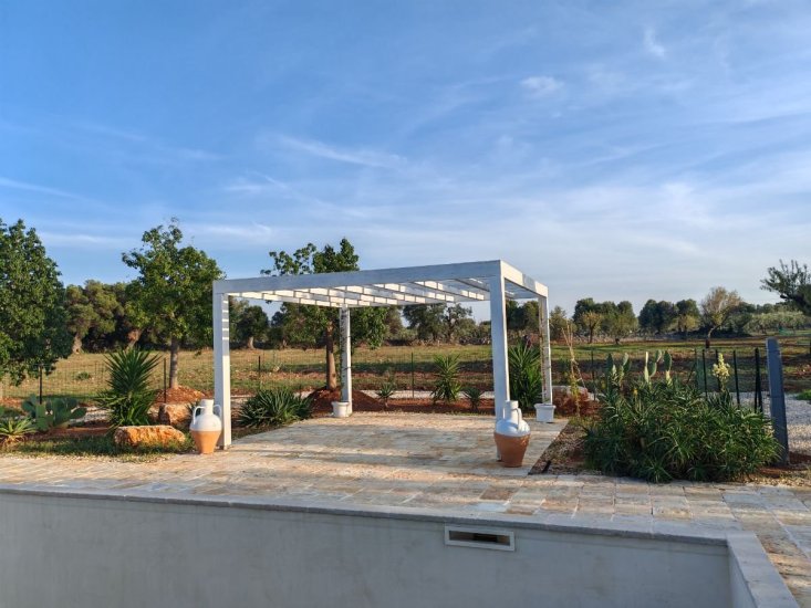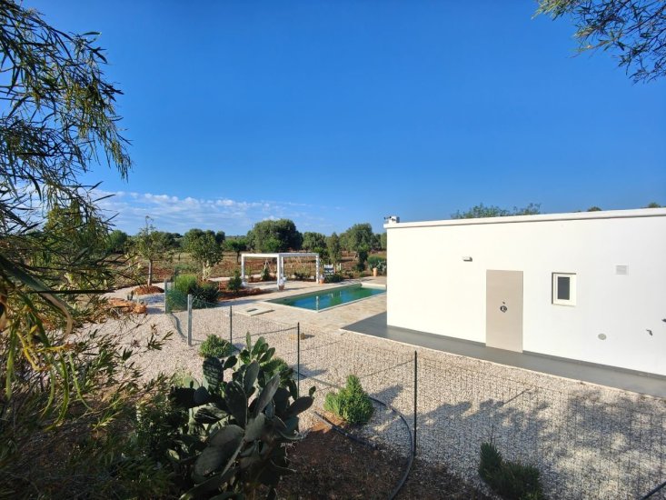 La dimora è circondata da un vasto terreno di circa un ettaro adorno di maestosi ulivi e macchia mediterranea, la splendida piscina, di 40mq (4x10m) attrezzata con doccia esterna, è il luogo ideale per rinfrescarsi dal sole italiano. Trascorrerai le giornate oziando sui lettini sparsi per la piscina. Vi è una splendida veranda d’entrata, già predisposta con impiantisca e ideale da chiudere con vetrate, e un bel gazebo esterno, entrambi offrono un posto meraviglioso per prendere sollievo dal sole. Qui potrai godere di numerosi pasti all'aperto, vivendo momenti di convivialità.