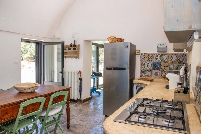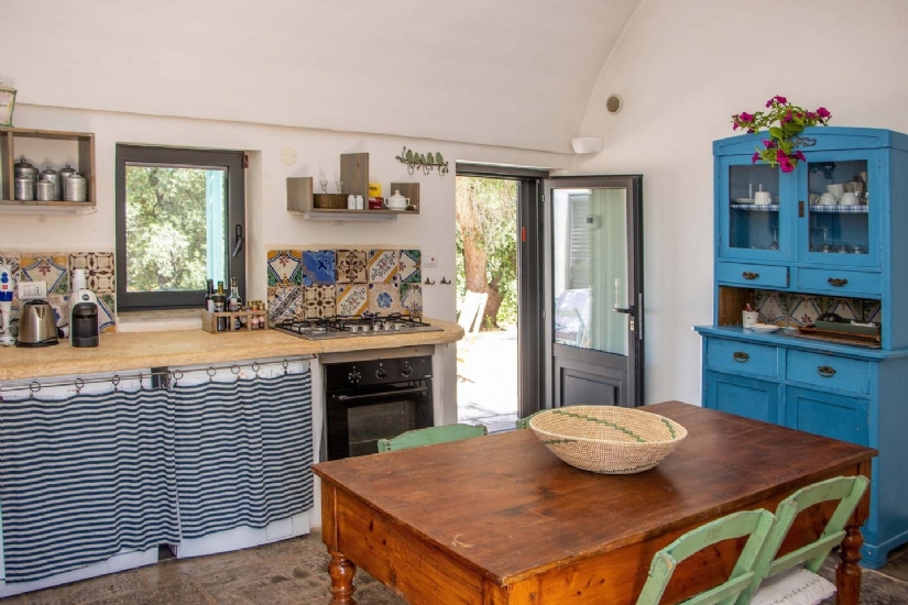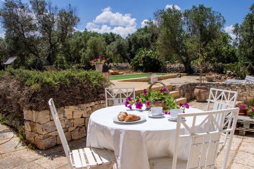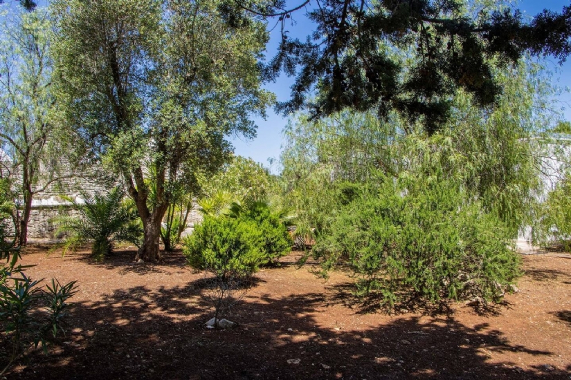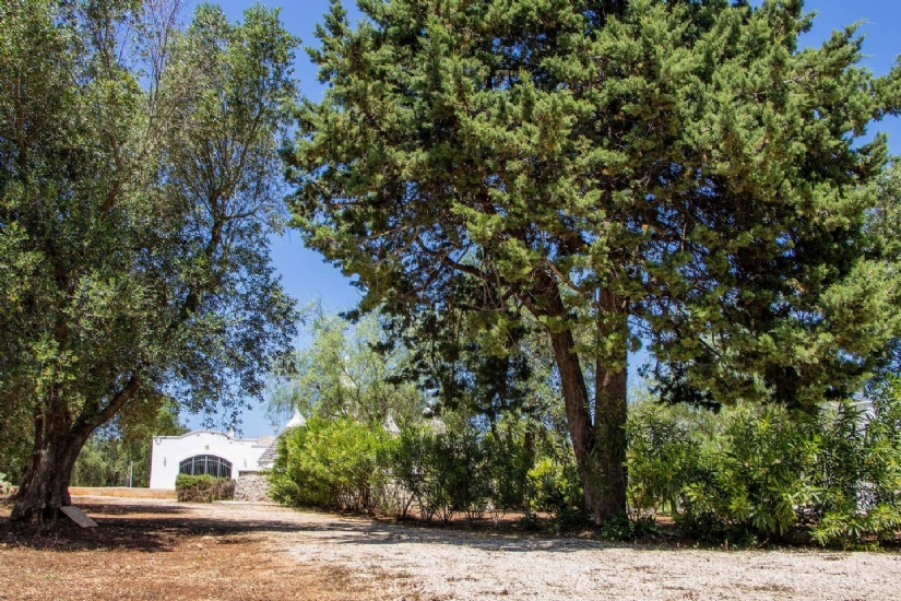 La cucina, spaziosa e attrezzata, diventa il fulcro della casa, pronta a ospitare momenti di convivialità con la famiglia e gli amici, ma anche perfetta per chi ama dilettarsi in piatti della tradizione pugliese. All’esterno, il giardino di 14.600 mq, curato nei minimi dettagli e popolato da ulivi secolari e alberi da frutto, è un angolo di natura che invita alla contemplazione e al relax. La piscina di 40 mq diventa il centro di ogni giornata estiva, dove il suono del vento tra le fronde degli alberi e la vista sul paesaggio circostante regalano una sensazione di pace totale.