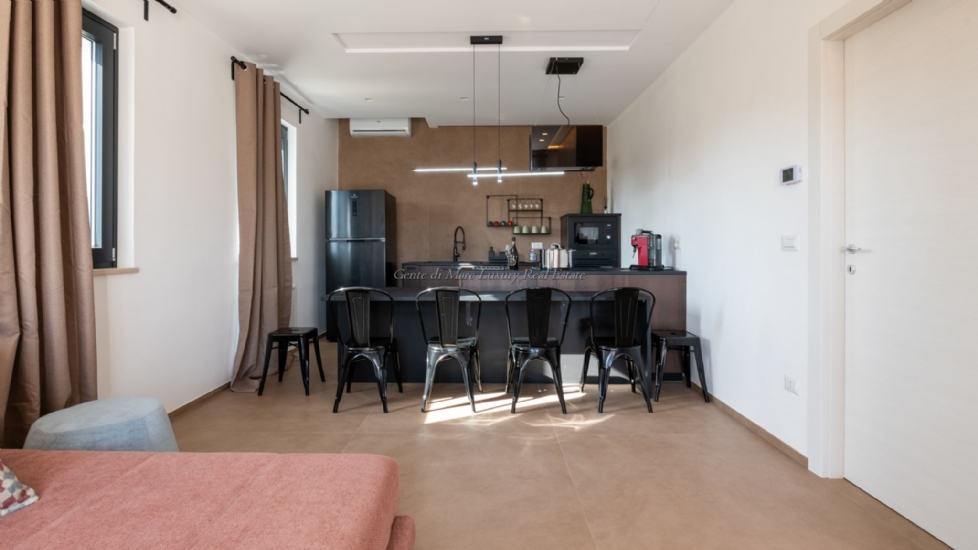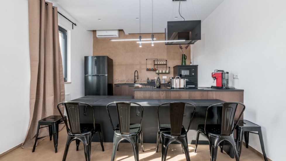 Questa dimora si sviluppa in due unità indipendenti, ognuna pensata per offrire la massima privacy e comfort. La prima unità, spaziosa e luminosa, è composta da un ampio soggiorno con divano elegante, perfetto per il relax e l'intrattenimento, e una cucina moderna con piano cottura su isola, che si fonde armoniosamente con la zona pranzo. La suite matrimoniale, un angolo di lusso, dispone di un elegante bagno con doccia a vista, un dettaglio sofisticato che arricchisce ulteriormente la sua bellezza. La seconda unità si distingue per due camere da letto matrimoniali, ciascuna con il proprio bagno en suite, per garantire il massimo del comfort e della privacy.