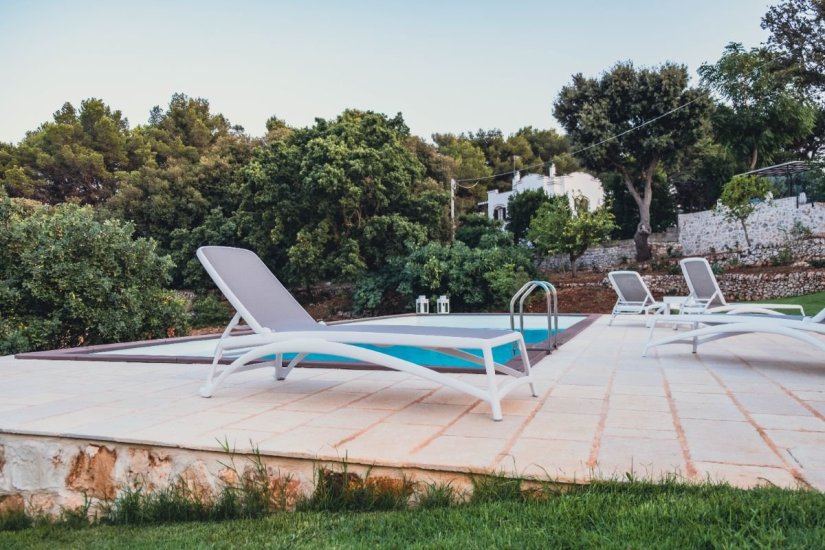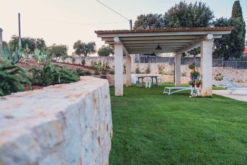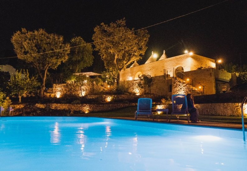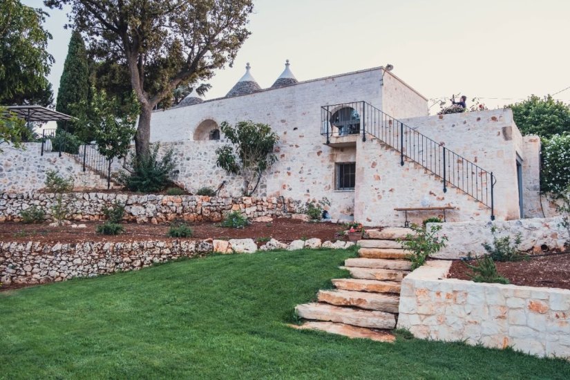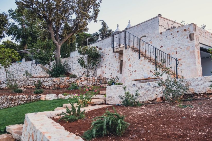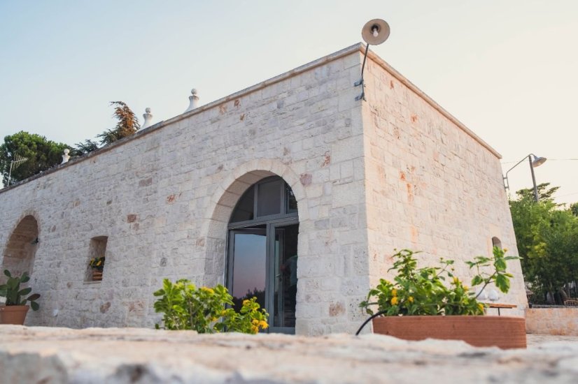 Questa residenza incanta per il suo equilibrio perfetto tra natura e design: trulli autentici, una raffinata lamia in pietra viva, ed elementi architettonici contemporanei si fondono in un progetto unico, completato nel 2020 dopo un intervento di ristrutturazione integrale, curato con sensibilità estetica e visione tecnologica.