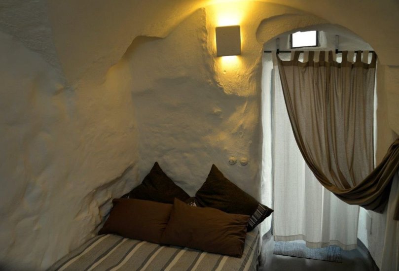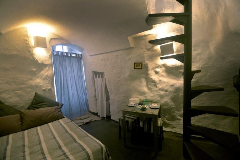 Ogni dimora è una piccola opera d’arte incastonata nella pietra viva, con dettagli originali restaurati, volte a botte, camini in pietra, scale elicoidali, soppalchi in legno, e una terrazza panoramica che toglie il fiato.