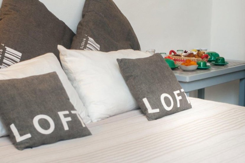 La seconda soluzione è un loft luminoso, accogliente, dal respiro nobile. Entrando si è accolti da un grande camino in pietra, protagonista dello spazio insieme al letto matrimoniale centrale, all’angolo cottura con minifrigo, alla libreria artigianale e a un bagno elegante con doccia. Nascosto sul soppalco, un terzo letto aggiunge versatilità, trasformando questo ambiente in un perfetto spazio per famiglie o coppie amanti del comfort.