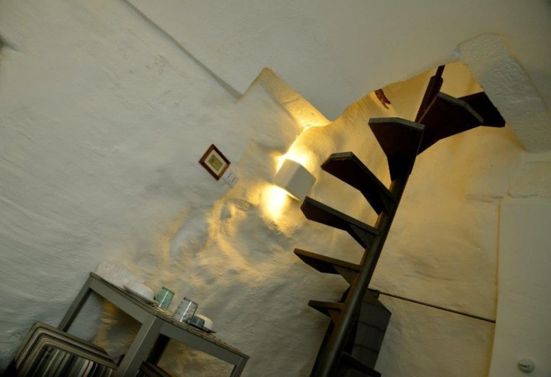 Infine, la quarta perla: un monolocale deluxe con terrazza privata, distribuito su più livelli, dove ogni rampa di scale svela un nuovo incanto. La zona notte è un piccolo gioiello con letto in muratura alla francese, camino, angolo lettura e nicchia-armadio. Salendo, si accede a un secondo livello con bagno, doccia a cascata, angolo cottura e poltrona letto. Ma è solo l’inizio: un’ultima, suggestiva strettoia conduce al terrazzo segreto, un luogo sospeso tra cielo e terra, affacciato da un lato sul dedalo bianco di Ostuni e dall’altro su un mare di ulivi secolari che degrada fino all’Adriatico.