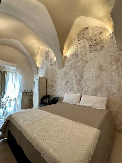 Accedendo attraverso una comoda scala, si entra in un open space living-cucina-letto che fonde armoniosamente ogni funzione in un unico ambiente luminoso e multifunzionale. L’elegante bagno con doccia completa la proprietà, mentre le tipiche volte a stella, autentico segno distintivo dell’architettura locale, regalano un senso di profondità e verticalità che incanta al primo sguardo.
