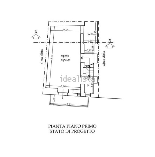 -Circa 31 mq al primo piano con open space living-cucina-letto e bagno con doccia