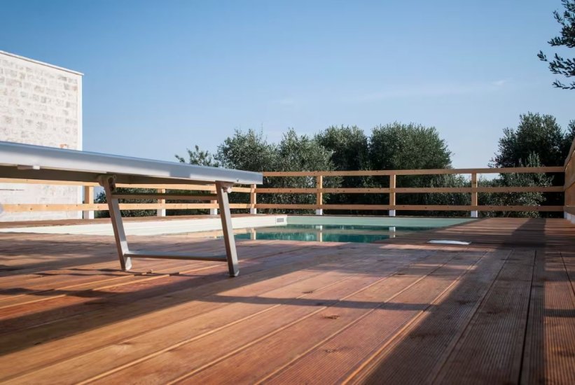 Completamente restaurata con artigianalità e sensibilità estetica, la residenza unisce trulli e lamie originali valorizzati da volte maestose, soffitti a cielo di carrozza e pietra viva che riflette la luce dorata del Sud. Gli interni, circa 120 mq distribuiti con armonia, rivelano una zona giorno ampia e luminosa che si estende verso un pergolato naturale, perfetto per pranzi d’estate e colazioni lente. Due camere da letto intime e raffinate, un bagno dal carattere essenziale, ambienti di servizio e depositi perfettamente integrati definiscono un’architettura pensata per un vivere disinvolto, accogliente, autentico. Una piscina fuori terra, elegante nel suo inserimento paesaggistico, completa l’atmosfera sospesa tra comfort e natura incontaminata.