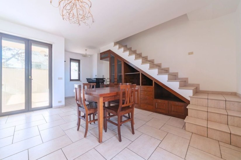 Al piano terra, la villa accoglie con una spaziosa cucina e una sala da pranzo con camino, un ambiente ideale per vivere l’atmosfera calda e raffinata tipica delle dimore mediterranee. Al primo piano, la zona notte offre due camere da letto luminose e un bagno, garantendo comfort e privacy. Completano la proprietà un seminterrato di circa 140 mq con bagno e una splendida terrazza panoramica, perfetta per godere del tramonto sul mare o organizzare eventi esclusivi.