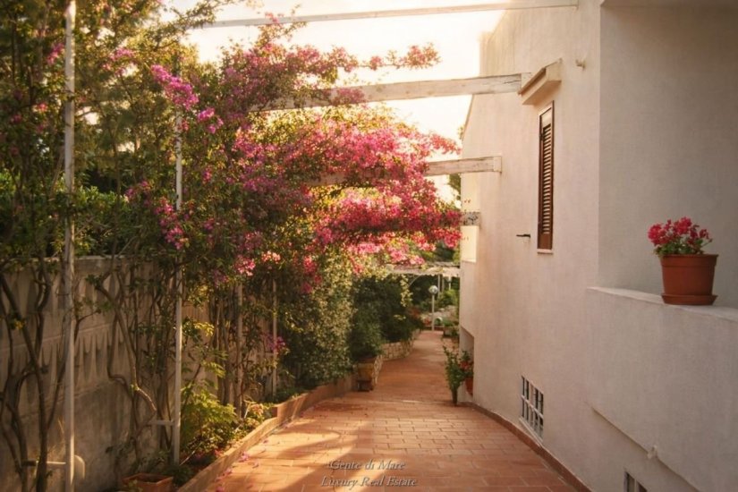La villa è elegantemente arredata e dotata di ogni comfort. Gli spazi interni comprendono tre camere da letto, due bagni, due cucine completamente elettriche con piano a induzione, camino, termosifoni autonomi con caldaia collocata in apposito locale nel giardino, oltre a un esclusivo vano doccia esterno ideale dopo una giornata di mare. La sala del piano superiore è climatizzata e l’intera casa dispone di connessione Internet wireless H24 WindTre.