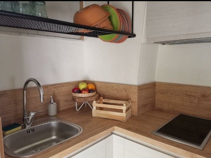 La casa offre una camera da letto luminosa, un angolo cottura funzionale, un bagno elegante e un balcone con vista. Dotata di aria condizionata caldo/freddo, è perfetta sia come dimora privata sia come B&B o casa vacanze.