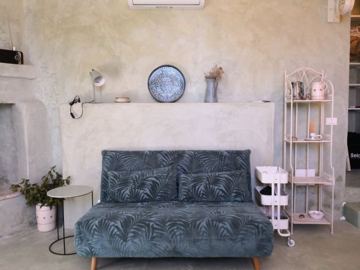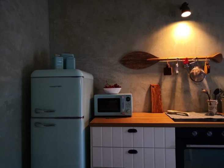 GLI INTERNI: Gli ambienti, rifiniti in biointonaco naturale, esprimono uno stile elegante e armonioso. La zona living ospita una cucina-soggiorno con divano letto e stufa a pellet, mentre la camera-studio con cabina armadio garantisce versatilità. Il bagno, curato nei dettagli, presenta una doccia in tadelakt. Completa la proprietà un locale tecnico esterno con servizi e lavanderia.