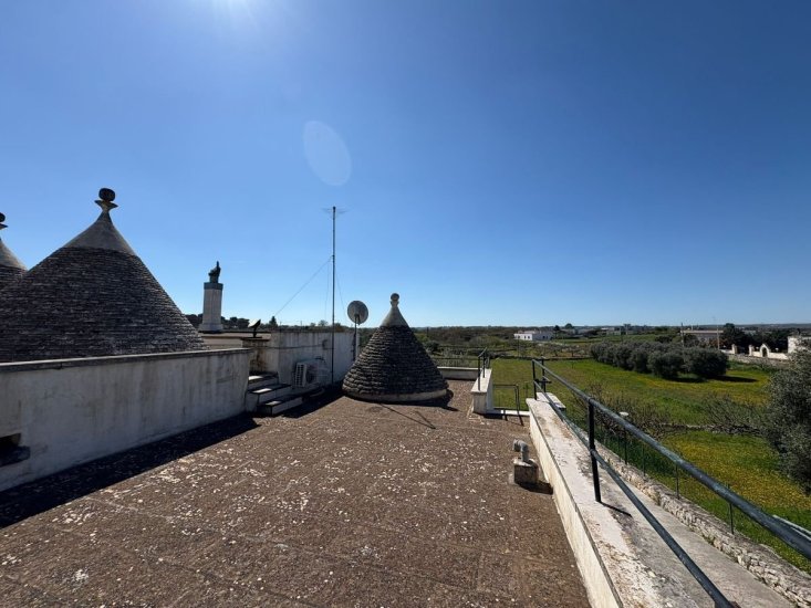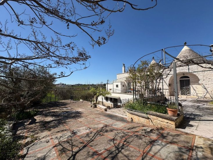 GLI ESTERNI: Circondato da circa 1700 mq di terreno, il trullo offre un ampio piazzale terrazzato, arricchito da gazebi in ferro, illuminazione esterna e verde curato. Presenti inoltre zona parcheggio, terrazza abitabile e doppio accesso carrabile e pedonale.