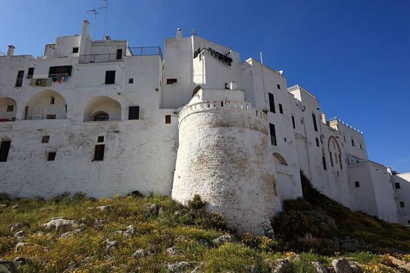 La magia di Ostuni, la Città Bianca, è legata alla caratteristica colorazione con pittura a calce del borgo antico, una pratica tuttora rigorosamente rispettata dai residenti. Al centro del borgo troneggia la quattrocentesca Cattedrale in stile romanico-gotico su cui spicca un grande rosone a 24 raggi di rara bellezza.