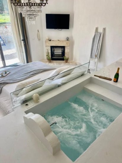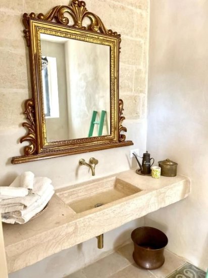 GLI INTERNI: L’anima della tenuta si racconta attraverso due volti distinti e armoniosamente integrati. La parte storica, sapientemente restaurata, custodisce tre camere con suggestive volte in pietra e tre bagni anch’essi rifiniti in pietra, ognuna con ingresso indipendente dal giardino, offrendo privacy e autenticità in ogni dettaglio.